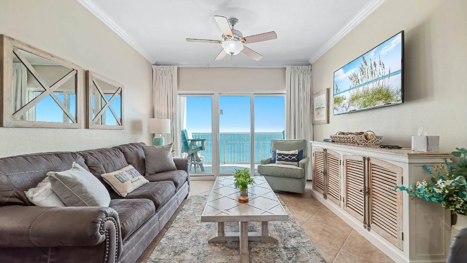 The Gulf Shores accommodation boasts views of the sea.